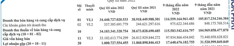 Kết quả là lợi nhuận kế toán trước thuế -1300 tỷ. Như vậy có thể thấy biến động tỷ giá đã góp phần lớn vào việc âm kết quả kinh doanh quý 3 này. Một yếu tố nữa là tính chung cho cả 3 quý thì tổng lợi nhuận sau thuế của HPG khoảng 10.500 tỷ. Việc kết quả kinh doanh quý 3 âm không làm ảnh hưởng nhiều đến thành quả của cả 3 quý. Trong khi HSG NKG lỗ quý 3 đã bào mòn lợi nhuận thu được kể từ đầu năm 2022. Như vậy trong bối cảnh hiện tại HPG vẫn thể hiện sự chống chọi tốt nhất trong ngành. Với tình hình thị trường thép như vậy nhưng HPG chỉ chịu lỗ trước cú đánh bồi của tỷ giá cũng là một sự cố gắng rất lớn.